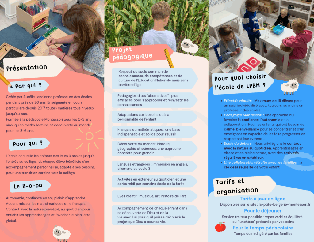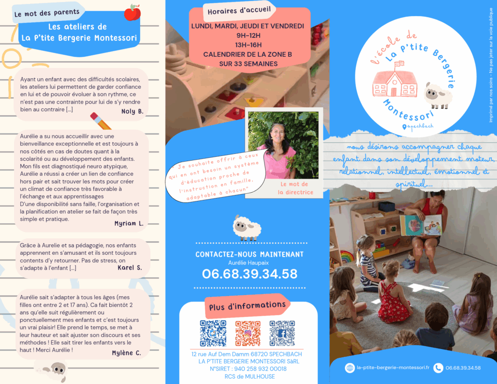 Horaires : 9h-12h / 13h-16h (les parents se relaient actuellement pour la pause méridienne)